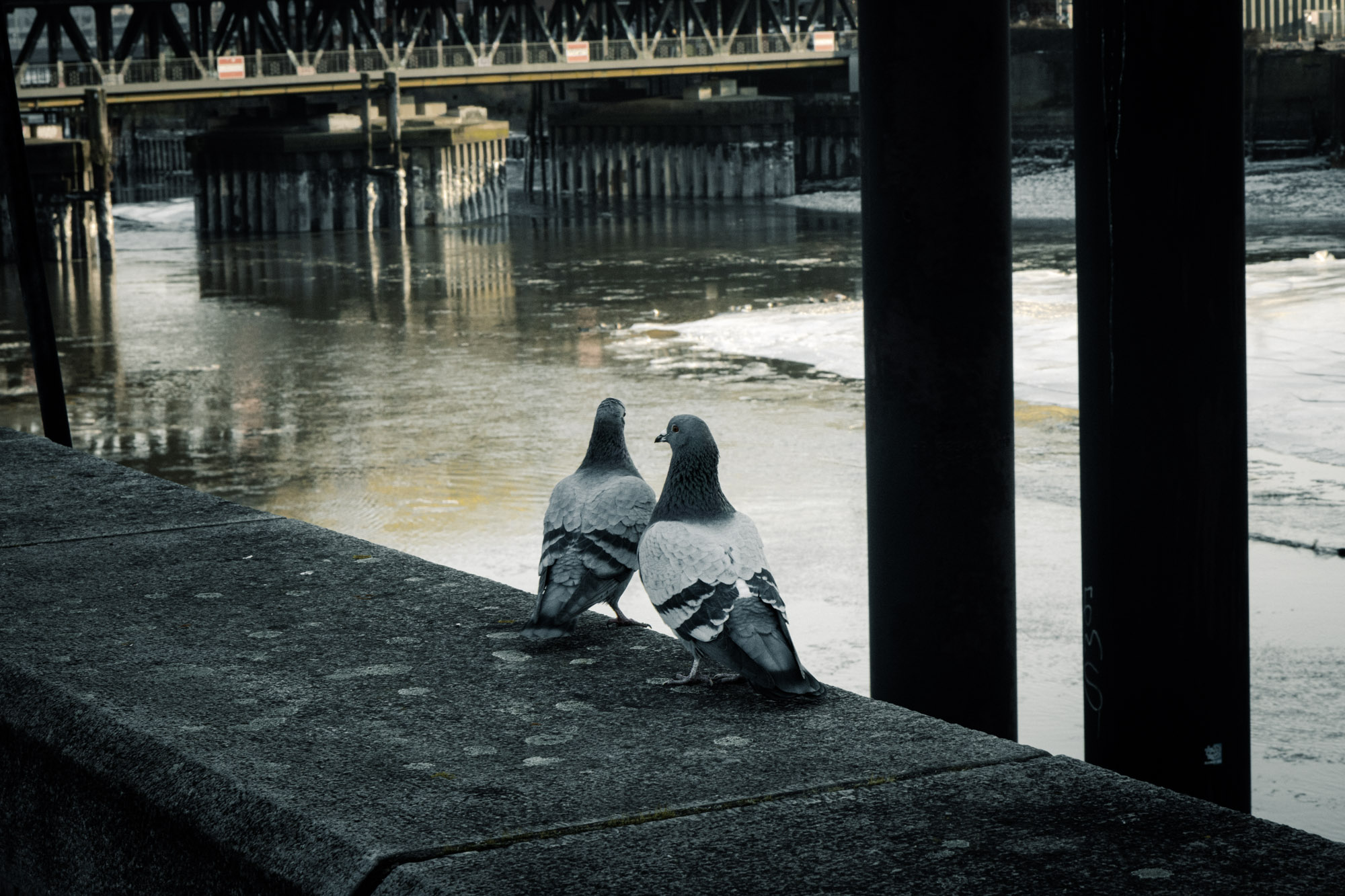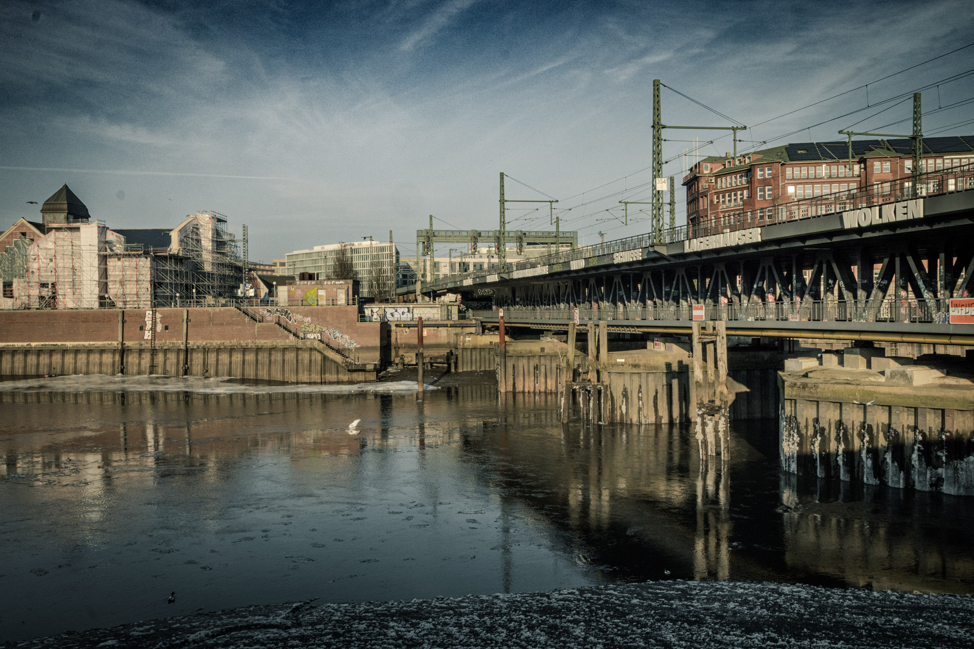 Der Schnee ist zwar weitestgehend weggetaut, aber an einigen, schattigen Ecken bleibt er noch liegen, da es nach einer kurzen Tau-Phase doch wieder richtig kalt geworden ist. Einen solch frostigen Anblick bei strahlendem Sonnenwetter gibt es in Hamburg nicht häufig, weshalb ich mich freue, diesen Nachmittag eingefangen zu haben.