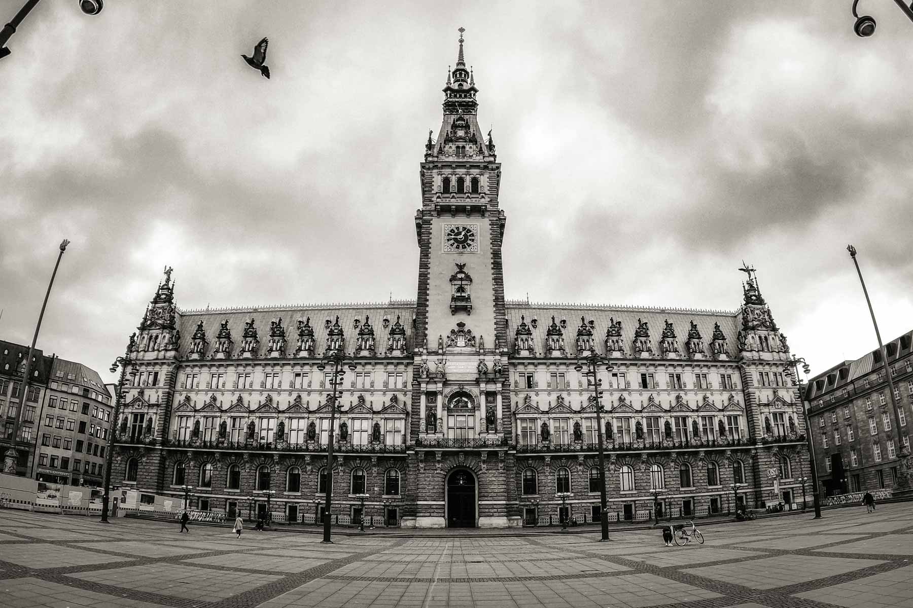 Hier verbirgt sich keine Galerie mit Photos Hamburger Sehenswürdigkeiten, die in Zeiten von Corona menschenleer sind, doch aber wenigstens ein Bild des Hamburger Rathauses, dass selten so ungestört fotografiert werden kann.