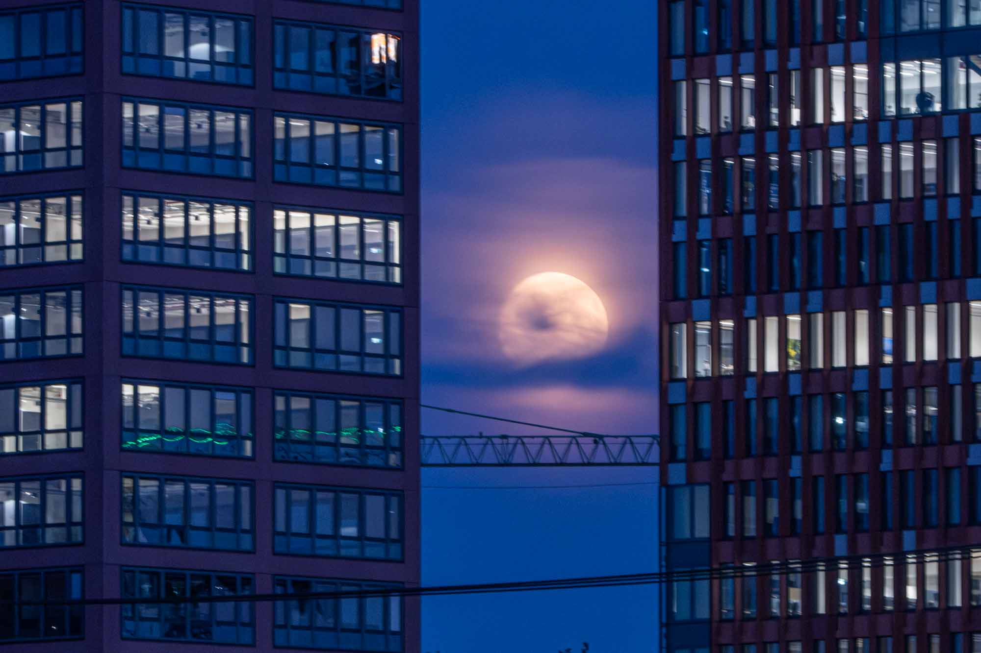 Dass ich eine Schwäche für Mondfotos habe, hat man vielleicht schon anhand der früheren Galerien erahnt. Diesen September allerdings braucht es vier Anläufe, bis sich der dann schon nicht mehr ganz so volle Mond eindrucksvoll und außergewöhnlich weit im Norden über der Hamburger Skyline zeigte.