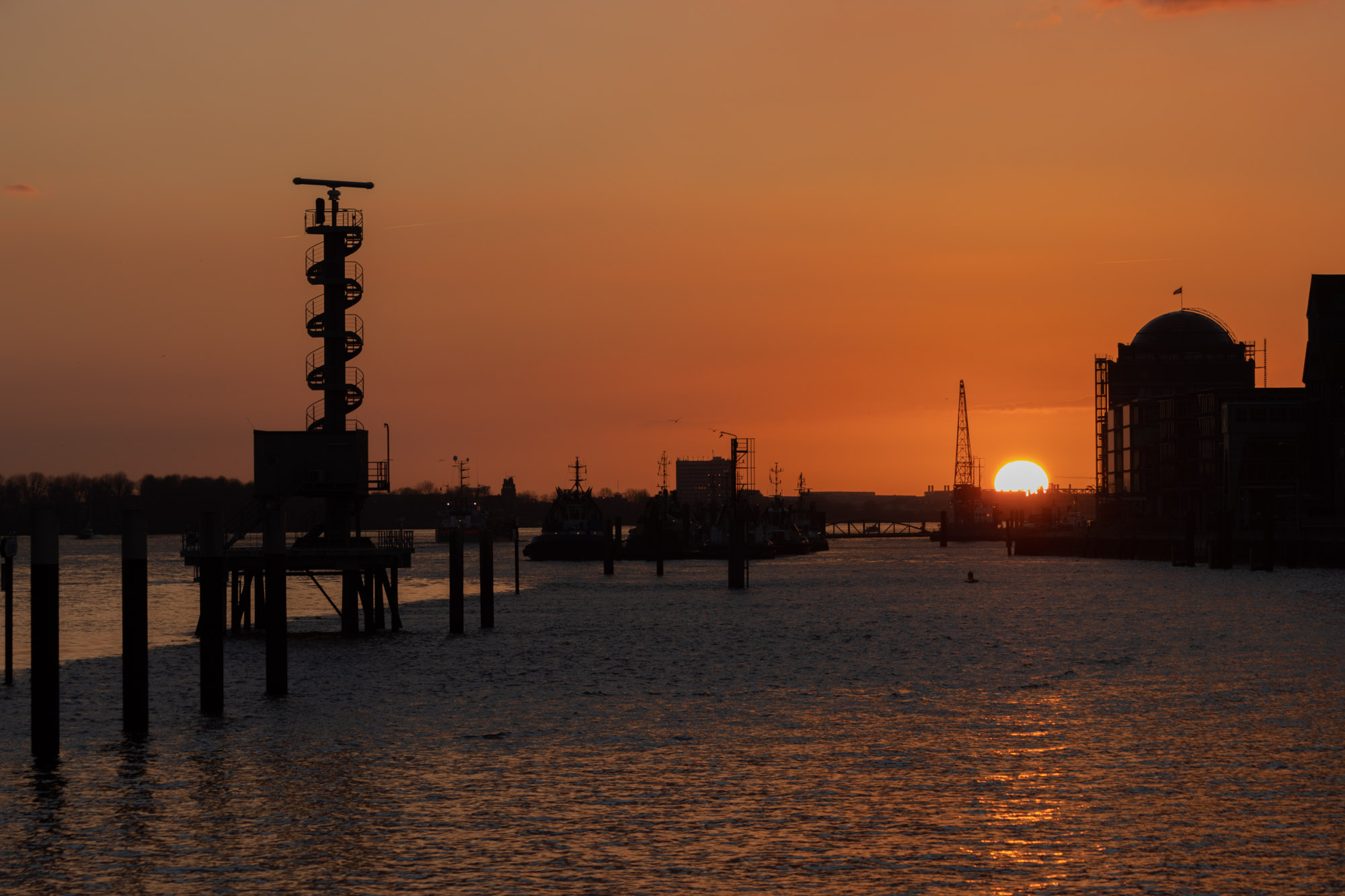 Kaum bietet uns Corona eine kleine Verschnaufpause (jedenfalls hatte man das vor vier Wochen noch geglaubt), da haben wir plötzlich einen Krieg in Europa und an Normalität und einmal Durchatmen ist nicht zu denken. Für einen kleinen Gang vom Fischmarkt bis nach Ovelgönne und zurück hat es dann aber doch gereicht und der Kontrast zwischen den bedrückenden Nachrichten und dem schönen Himmelsschauspiel erst im Westen, dann im Osten könnte kaum größer sein.