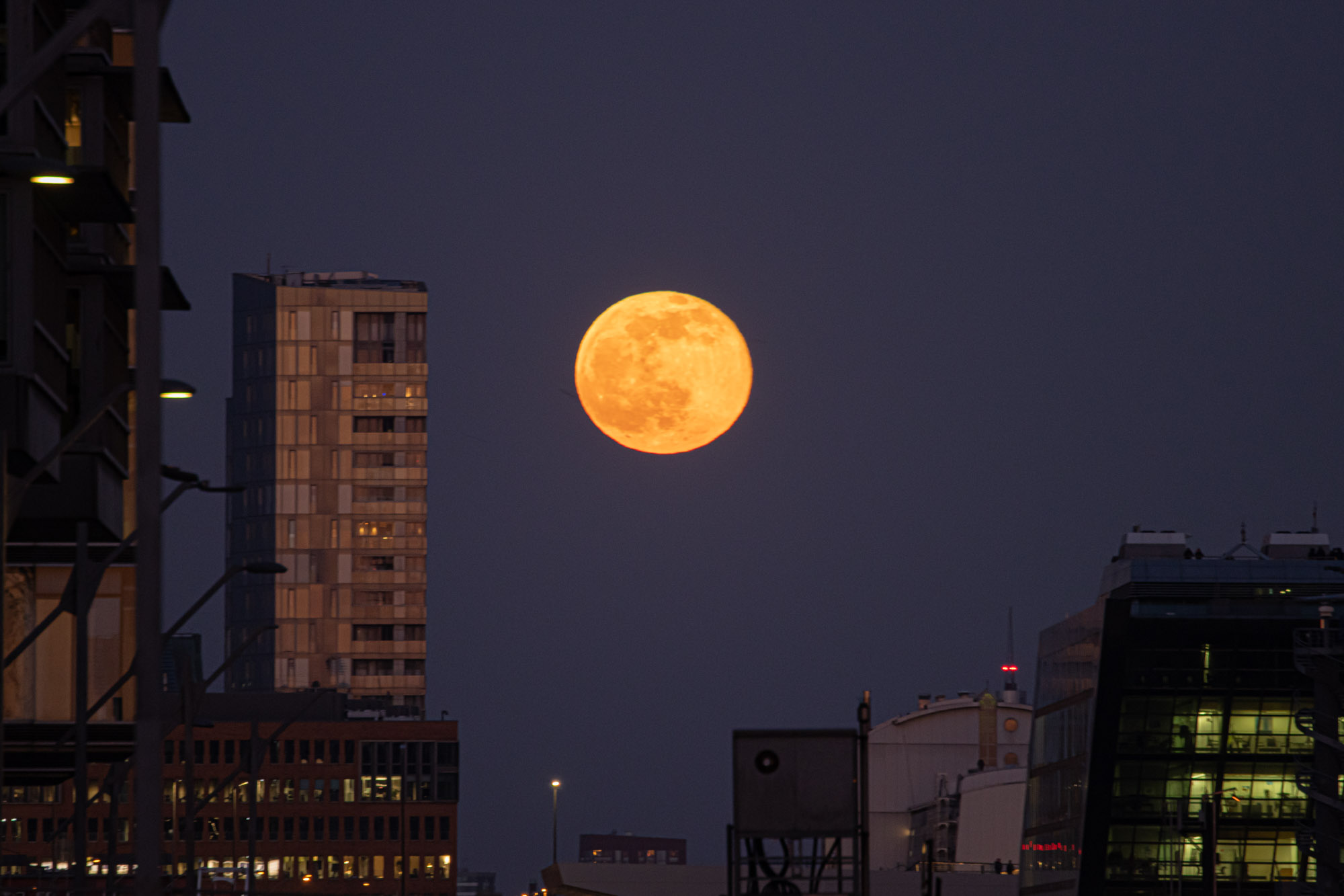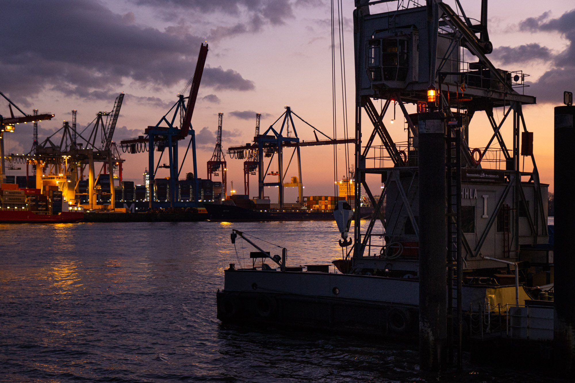 Sonne und Mond am Hamburger Hafen